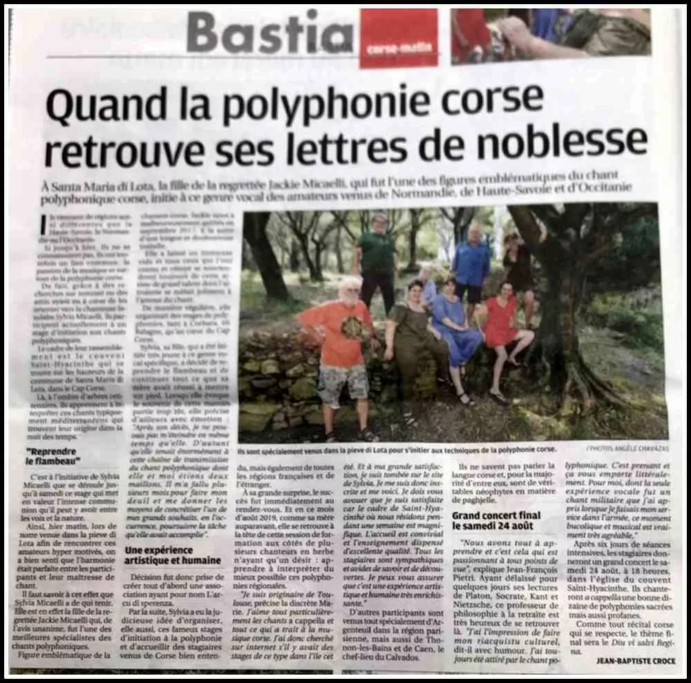 « Pendant plus d'une dizaine d'années, de l'Alboru jusqu'au Couvent de Corbara, elle a accueilli des centaines de stagiaires qui, venus apprendre la polyphonie corse, sont repartis avec plus que cela : une vision différente du rapport à l'autre, une culture de l'ouverture, de la transmission, une éthique de travail ».